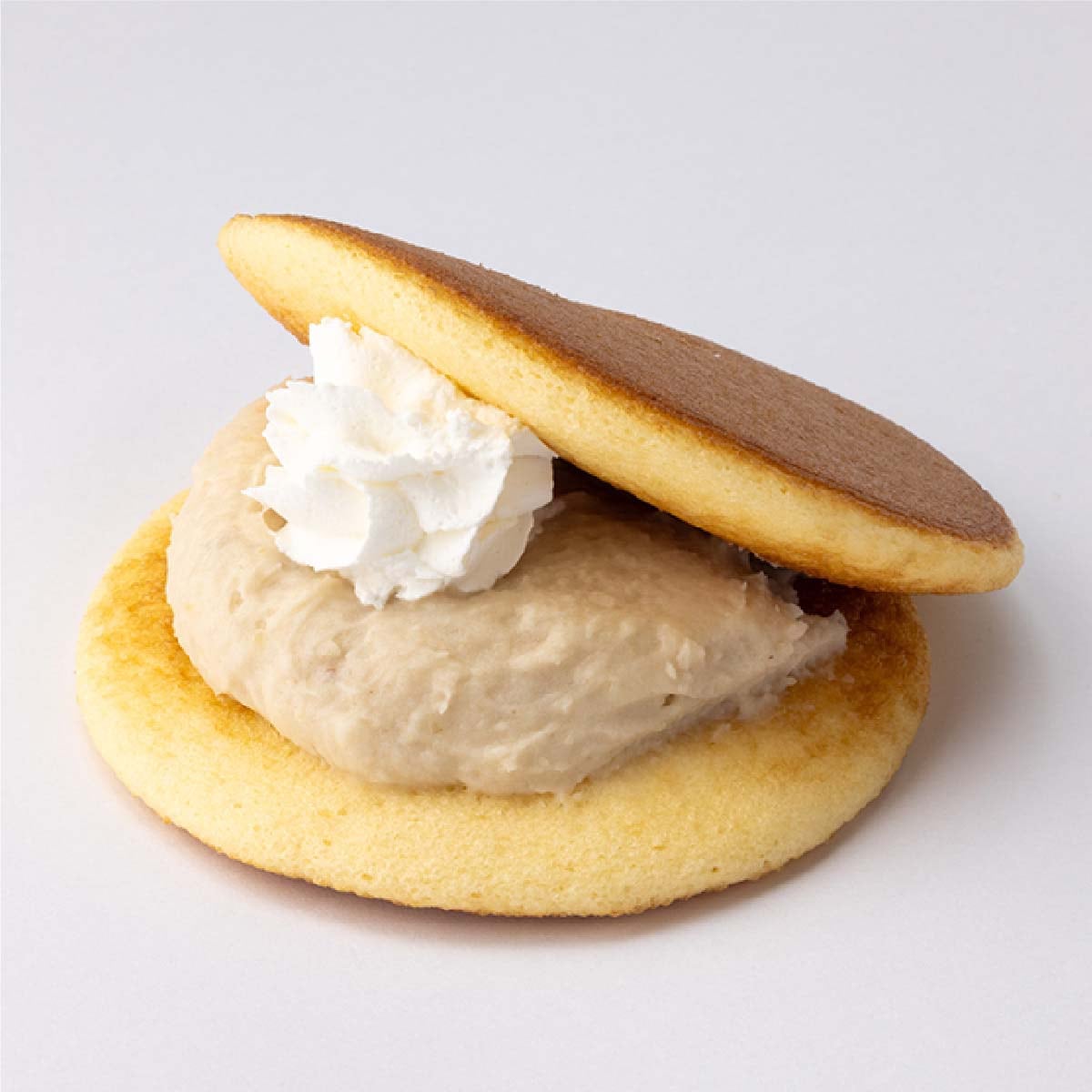 モンブラン生どら:小麦粉、砂糖、卵、栗、白あん、トレハロース、水あめ、みりん、植物油脂、乳製品、麦芽糖、洋酒、重曹、乳化剤、カゼインNa、安定剤(セルロース、増粘多糖類)、香料、メタリン酸Na、カロチン色素